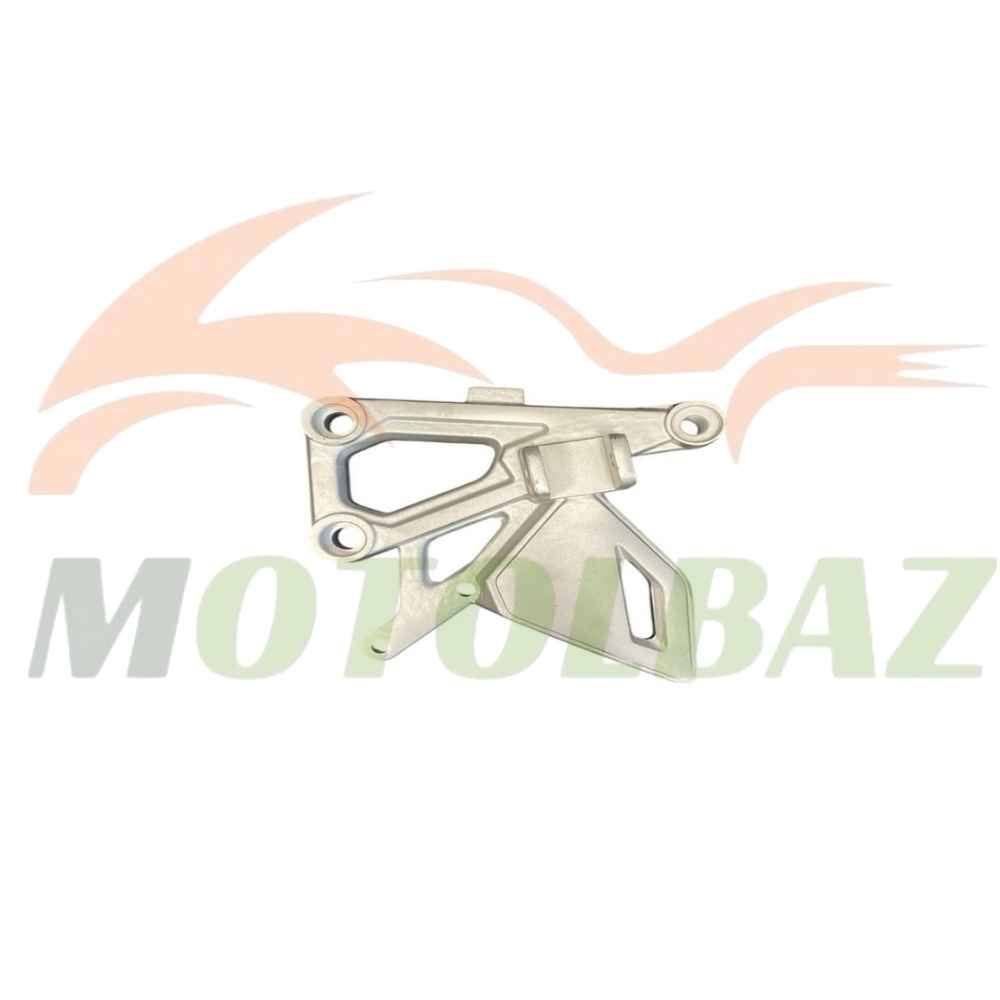 این براکت در بخش جلویی فریم کنار اگزوز نصب شده و علاوه بر نگهداری پایه، نقش ساپورت محافظت از پا و پدال ترمز را نیز ایفا میکند.